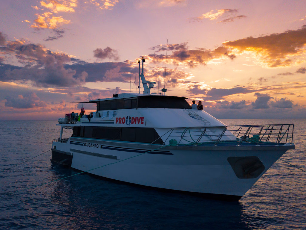 Pro Dive Cairns operates three multi-million dollar, fully equipped dive vessels: MV Scubapro I, II and III. All vessels are used in conjunction with trainingand liveaboard operations. The Scubapro vessels were specifically designed to handle all the varying weather conditions inherent to The Great Barrier Reef, and offer a smooth, safe and comfortable ride. Over three deck levels, each vessel features 14 twin share bunk bed cabins, 2 double bed cabins with shared bathrooms, central air conditioning, plenty of cabin space, access to natural light, a large sun deck and a large dive deck.